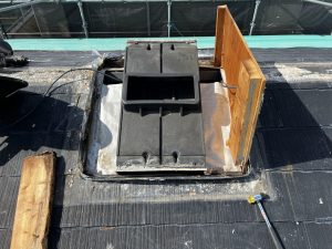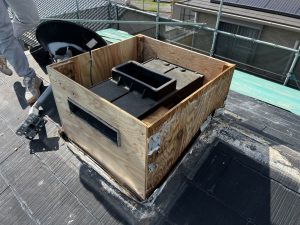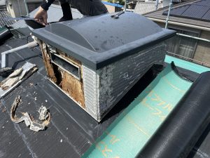 お施主様の話によると新築してすぐに煙突から雨漏りがすごかったみたいで、サイディングの上からガルバでカバーしたとのこと。