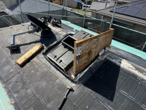木下地を新しいものに変え、防水シートを貼り、4行角波で仕上げました。